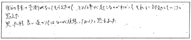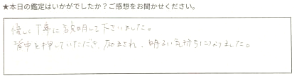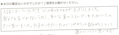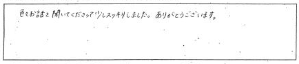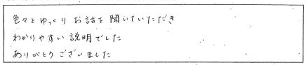 色々とゆっくりお話を聞いていただきわかりやすい説明でした。ありがとうございました。