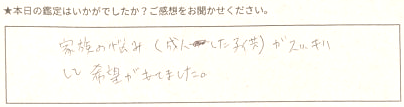 家族の悩み(成人した子供)がすっきりして希望が持てました。