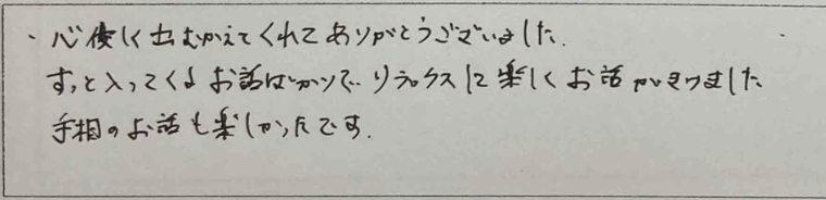心優しく出迎えてくれてありがとうございました。すっと入ってくるお話ばかりでリラックスに楽しくお話が聞けました。手相のお話も楽しかったです。