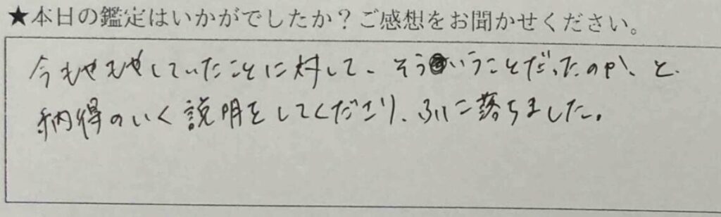 ・じっくり向き合って鑑定して下さいました。