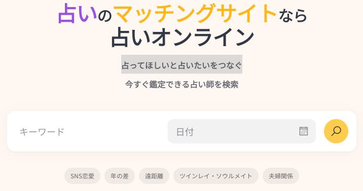 「占いオンライン」では、占ってほしいと占いたいをつなぐ、マッチング型のサービスを展開しています。希望の日時や鑑定で合う占い師が見つかるので、運命的なマッチングを楽しめるサービスになっています。