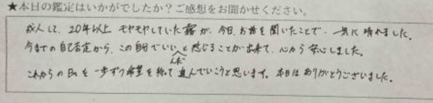 心の奥底にあった何故?知らなかった真実を的確に鑑定して頂き驚愕の結果でした。