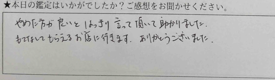 やめたほうが良いとはっきり言って頂いて助かりました。もてなしてもらえるお店に行きます。ありがとうございました。