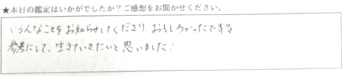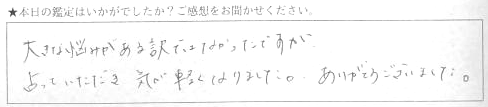 大きな悩みがある訳ではなかったのですが、占っていただき気が軽くなりました。ありがとうございました。