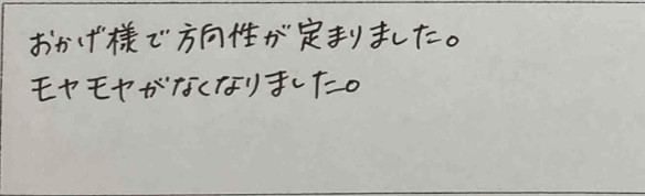 おかげ様で方向性が定まりました。モヤモヤがなくなりました。