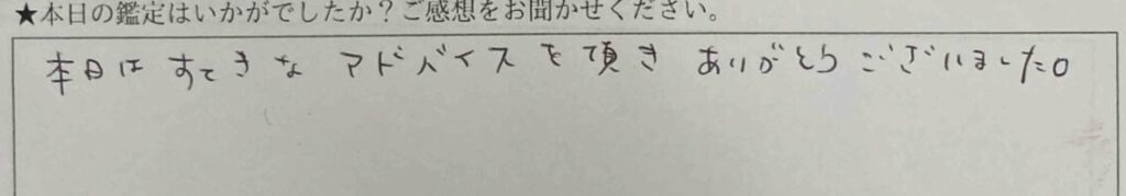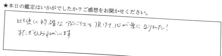 自分のことも相手のこともすごく言い当てられました。背中を後押ししてもらえました。ありがとうございました。