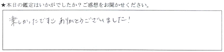 とても優しく、万能に様々な占いをしていただきました。楽しかったです。