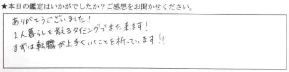 ありがとうございました!1人暮らし考えるタイミングでまた来ます!まずは転職が上手く行くことを祈っています‼︎